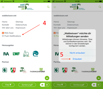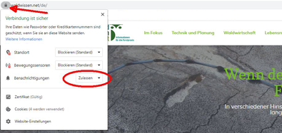 Wir versenden Push-Benachrichtigungen über neu veröffentlichte Artikel. Ihr Browser auf dem Desktop oder auf mobilen Geräten fragt Sie bei der ersten Benachrichtigung, ob Sie Nachrichten von waldwissen.net erhalten möchten. Verneinen Sie diese Zustimmungsmeldung, erhalten Sie keine weiteren Nachrichten. Haben Sie zugestimmt und möchten dies wieder rückgängig machen, klicken Sie im Browser auf das Schloss ganz links in der Adressleiste. Unter "Benachrichtigungen" können Sie diese wieder deaktivieren oder aktivieren.