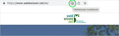 - Öffnen Sie in Ihrem Browser www.waldwissen.net. Der Browser erkennt die PWA-Funktionalität.