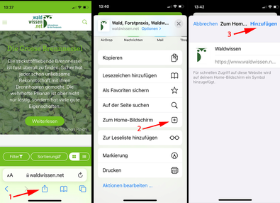 Über 50% der Nutzer besuchen waldwissen.net mobil. Deshalb haben wir die mobile Nutzerfreundlichkeit mit einer Progressiven Web App (PWA) zusätzlich: Sie können die PWA direkt über Ihren Browser verwenden. Die neue Web App bietet einige Vorteile: