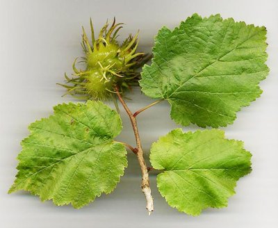 Abb. 7. Baumhaselzweig mit gestielten Laubblättern und Fruchtstand. Foto: Wikipedia