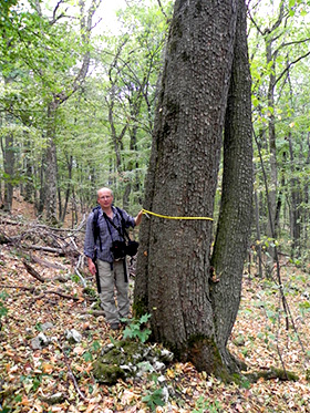 Abb. 4. Die stärkste wipfelschäftige Baumhasel in Oravita hat einen BHD von 76 cm und ein geschätztes Alter von 320 Jahren. Foto:Eckhard Richter