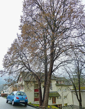 Abb. 1. Baumhaseln sind als Strassenbäume bekannt – wie hier in Schaffhausen. Aber sie wachsen auch im Wald und würden dem Klimawandel trotzen. Foto: Walter Tschannen