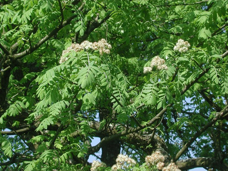 Abb. 1 - Zweige und Blüten des Speierlings sind der Vogelbeere zum Verwechseln ähnlich. Foto: Botanische Bilddatenbank Uni Basel, www.unibas.ch/botimage