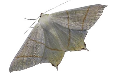 Der Holunderspanner oder Nachtschwalbenschwanz (Ourapteryx sambucaria), ein hübscher, auffälliger und in Europa weit verbreiteter Falter, ist eine der wenigen Falterarten, die sich als Raupe hauptsächlich an Sambucus entwickelt. Die Art bevorzugt zwar Holunder, ist aber nicht streng monophag an ihn gebunden, sondern kann sich auch an anderen Gehölzen, z. B. Flieder und Waldrebe, entwickeln. Die Falter, die ca. 40–50 mm Flügelspannweite aufweisen, fliegen in der Zeit von Mai–August. Die Raupen treten ab August auf. Die Art überwintert im Raupenstadium. Die verlängerten Spitzen der Hinterflügel führten bei der Art zu dem deutschen Namen Nachtschwalbenschwanz (Abbildung 7).
