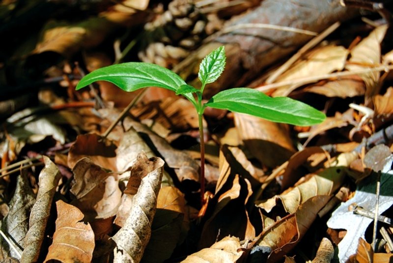 Die Esche - hier als wenige Wochen alter Keimling - keimt unter den vielfältigsten Boden- und Lichtverhältnissen. Ob die in der frühen Jugend noch ziemlich schattentolerante Pflanze jemals das adulte Stadium erreichen wird, um selbst Samen zu produzieren, hängt allerdings entscheidend von der Lichtmenge ab, an die sie ab der Jugend sehr hohe Anforderungen stellt (Bild: Steiner, BFW)