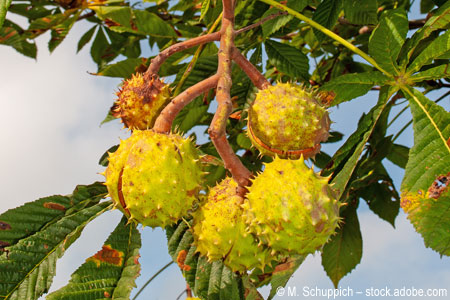 Abb. 1 - Die charakteristischen Früchte der Rosskastanie eignen sich gut zum Basteln. Foto: © Andrew Dunn