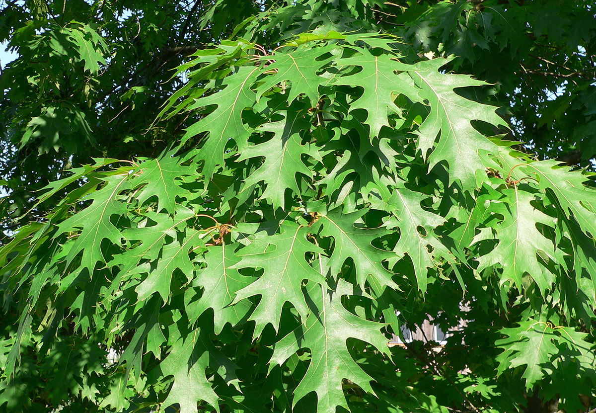 Die Roteiche (Quercus rubra), auch Amerikanische Spitzeiche genannt, ist ein bis zu 25 Meter hoher Baum, der in dichten Beständen auch mal bis 35 m hoch werden kann. Sie hat eine anfangs glatte, im Alter leicht geriefte bis schuppige Borke.