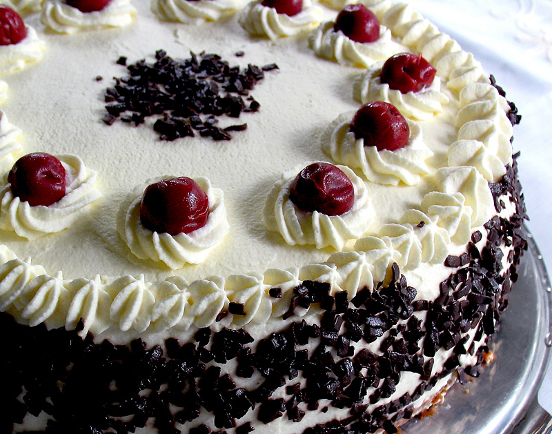 Abb. 6 - Sie trägt die Kirsche im Namen: die Schwarzwälder Kirschtorte. Auch ins Schweizer Nationalgericht Fondue gehört ein Schuss Kirsch. Foto: Helga Schmadel/pixelio.de
