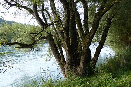 Die Silber- oder Weissweide (Salix alba, Abb. 1) ist eine raschwüchsige Baumart. Sie kann bis 25 m hoch werden und ein Alter von 100, im Extremfall bis zu 200 Jahren erreichen. Weitausladende Äste lassen diesen grössten Vertreter der heimischen Weidenarten imposant erscheinen. Die graue Rinde ist kreuzweise gefurcht und rissig.
