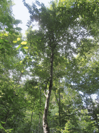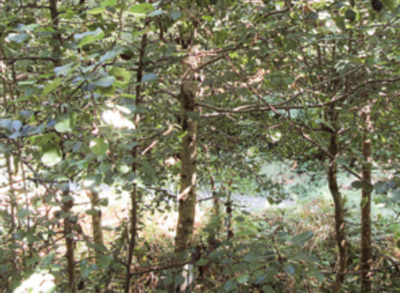 Abb. 8 - Die in einem Bestand gepflanzte Wildbirne sucht offensichtlich das Licht. Foto: Peter Rinderknecht