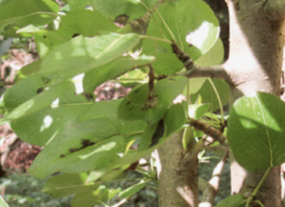 Abb. 6 - Die Wildbirne besitzt rundliche Blätter und Sprossdornen. Dagegen sind die Blätter der Kulturform eher elliptisch. Foto: Peter Rinderknecht