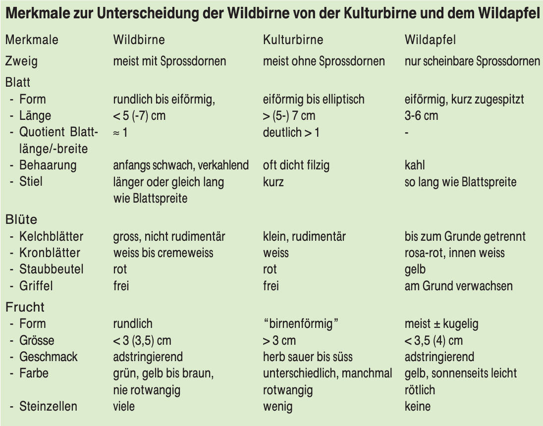 Schwierige Unterscheidung der Wildbirne von der Kulturbirne
