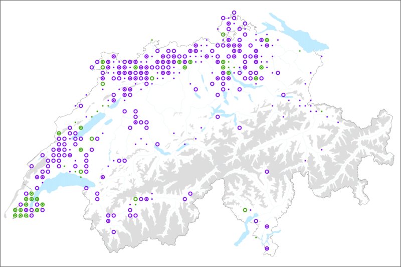 Abb. 3 - Verbreitung der Wildbirne in der Schweiz.Quelle: infoflora.ch