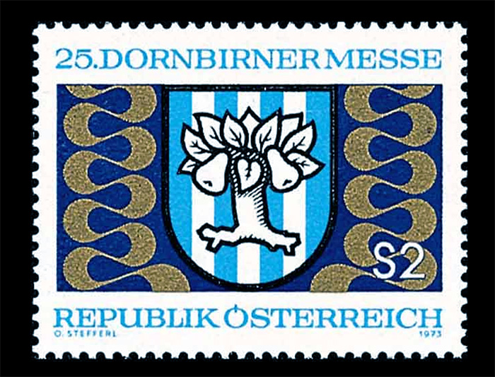 Abb. 2 - Briefmarke aus Österreich mit dem Wappen der Ortschaft Dornbirn. Foto: Österreichische Post, austria-forum.org (2009).