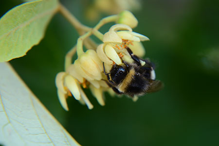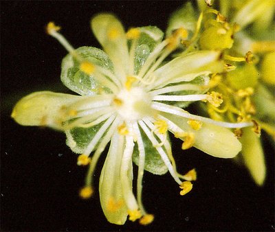Die Linden sind auf Insekten als Bestäuber angewiesen und bieten diesen Nektar und Pollen. Die Blüten sind zwittrig und vormännlich (Abb. 6). Bereits in der männlichen Phase der Blüte wird Nektar angeboten. Während der weiblichen Phase nehmen der Zuckergehalt und die Nektarmenge zu. Der Nektar befindet sich am Grund der Kelchblätter (Abb. 7). Erst wenn die Blüte befruchtet ist, wird kein Nektar mehr sezerniert.