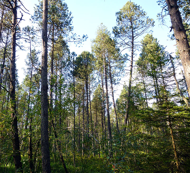 Die Spirke (Pinus rotundata) ist ein Juwel unter den bayerischen Moorarten! Weltweit gibt es Sie nur in Bayern und den angrenzenden Ländern von der Schweiz bis Tschechien und Sachsen. Die von ihr aufgebauten "Spirkenfilze" sind das natürliche Waldkleid vieler Moore Bayerns – nur in der Rhön fehlt sie natürlicherweise. Spirkenfilze treten als Krüppelwald oder bei leichtem Mineralbodenwasser-Einfluss auch als höherwüchsiger Hochwald auf. Sie neigen nicht zum Dichtschluss. Die Spirkenfilze wurden wegen ihrer Eigenart auch von Forstseite frühzeitig als etwas Besonderes und Schützenswertes erkannt.