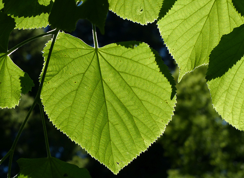 Abb. 3 - Die herzförmigen, am Rande gesägten Lindenblätter. Foto: Thomas Reich (WSL)