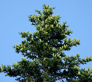 Abb. 2 - Die Weisstanne bildet im oberen Kronenbereich zahlreiche Zapfen. Foto: Thomas Reich (WSL)