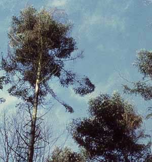 Abb. 7 - Im Bündner Rheintal setzt die Mistel geschwächten Tannen besonders stark zu und vermag sie innert weniger Jahre zum Absterben zu bringen. Foto: Ulrich Wasem (WSL)