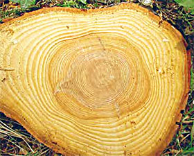 Abb. 5 - Der geringe Lichtgenuss in der Jugendphase zeigt sich im engen Jahrringbau im Zentrum dieses Baumes. Foto: Pascal Junod
