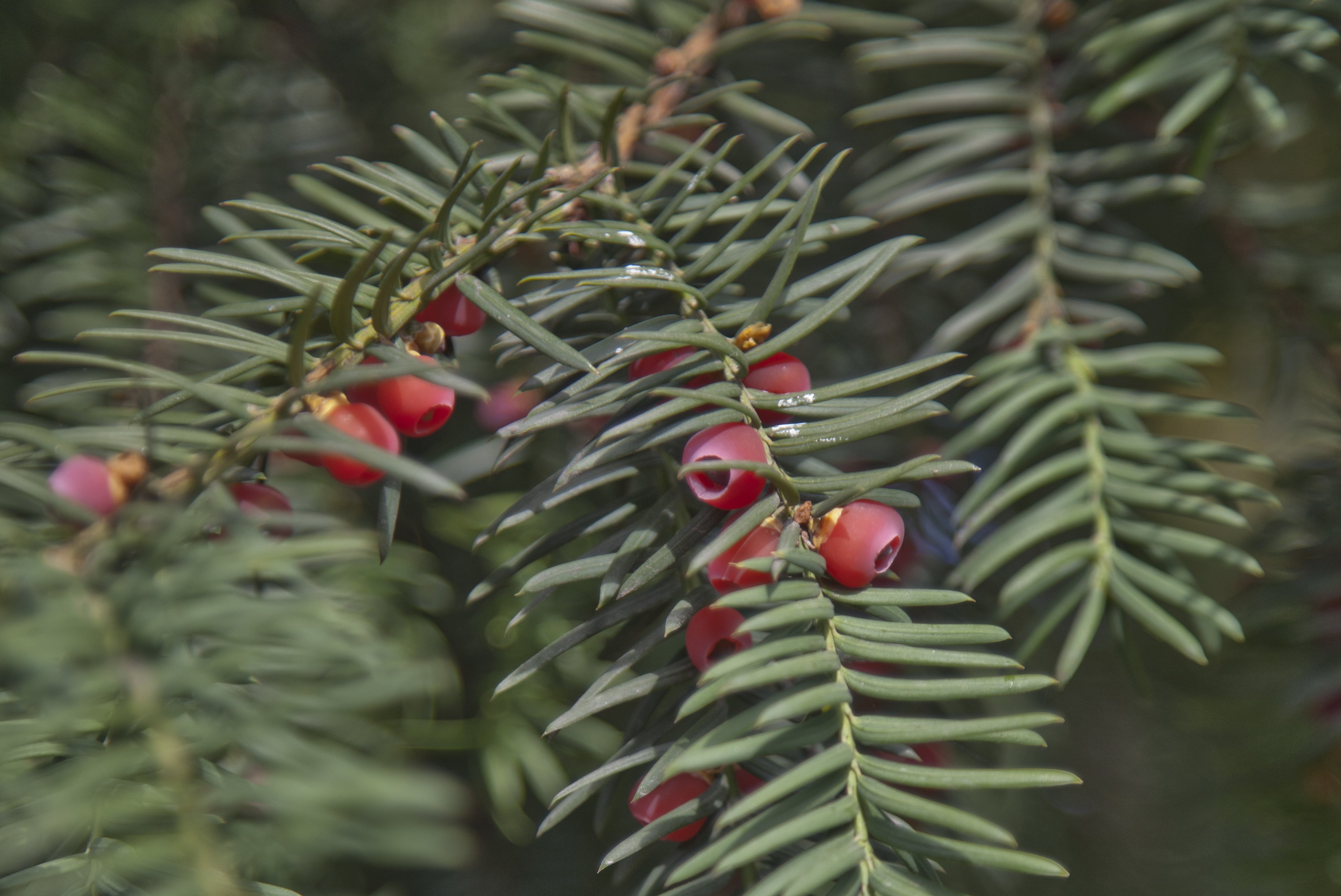 Biologisch ist die Eibe eine Mischform zwischen Laubhölzern und immergrünen Nadelhölzern. Sie altert extrem langsam, ihr Holz ist langlebig, widerstandsfähig und gleichzeitig biegsam. Deswegen stellten schon die Alemannen und Wikinger Bogenwaffen aus Eibenholz her. Die Eibe gehört aber auch zu den Taxus-Arten. Der lateinische Begriff Taxus ist vom griechischen toxon (= Bogen) übernommen worden, und Toxikum (griech. toxikon) heisst Gift. Same, Rinde und Nadelwerk der Eibe sind ausserordentlich giftig.