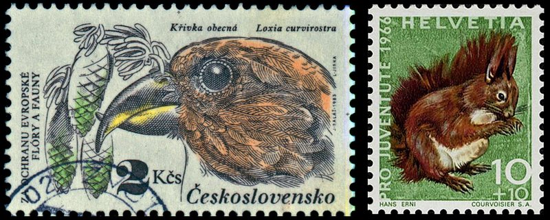 Abb. 5 - Der Fichtenkreuzschnabel oder das Eichhörnchen profitieren von Fichtensamen. Fotos: Koni Häne