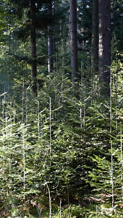 Verbissaufnahmen sind immer Momentaufnahmen, die noch dazu durch unterschiedliche Witterungsverläufe stark beeinflusst werden. Die Waldverjüngung ist aber ein Prozess, der sich über Jahre hinzieht. Entscheidend für das Konkurrenzgleichgewicht der Baumarten in gemischten Verjüngungen ist der Verlust des Terminaltriebes. Die verbissene Tanne kann nur aus dem nächst tieferen Astquirl wieder austreiben, gegenüber dem unverbissenen Nachbar hat sie einen nicht wieder einholbaren Konkurrenznachteil.