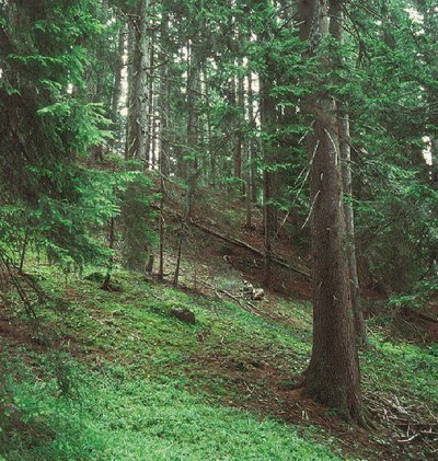 In den Zwischenalpen (Abb. 2) ist die Situation jedoch etwas anders: Namentlich in tieferen Lagen, vorzugsweise an Schattenhängen mit kühlem Klima, finden sich wohl immer wieder zum Teil recht ausgedehnte Bestände mit einem oft erstaunlichen Tannenreichtum. Bei genauerem Hinsehen fällt jedoch auf, dass grosse Gebiete vorhanden sind, in denen die Tanne auch auf eigentlich recht "günstigen" Standorten vollständig fehlt. Andererseits sind aber Tannenbestände unter Bedingungen anzutreffen, die nach unseren gängigen Vorstellungen für das Tannenwachstum als äusserst ungünstig erachtet werden müssen. Ist nun der oft gemachte Schluss zulässig, aufgrund solcher Vorkommen auf eine grossflächige zonale potenzielle Verbreitung zu schliessen? Wie erklärt sich dieses teilweise unreglmässige Verbreitungsmuster der Tanne im zwischenalpinen Bereich und welche Faktoren sind dafür verantwortlich?