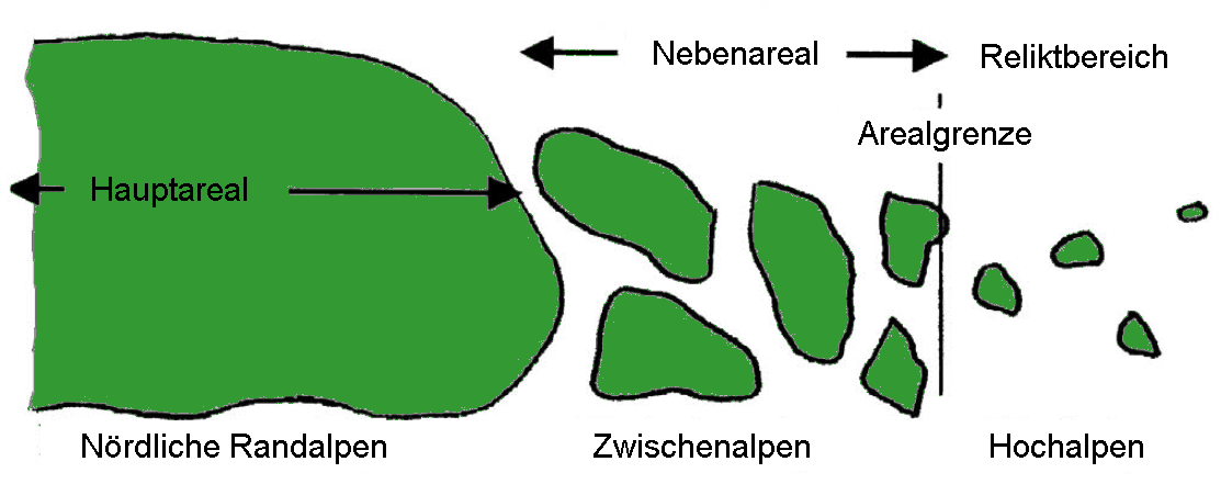 Mit den ungünstiger werdenden klimatischen Bedingungen begann sich die Tanne in Richtung der ozeanischeren Gebiete zurückzuziehen. Es stellt sich nun die Frage, wie ein solcher Rückzug vonstatten geht. Am plausibelsten scheint die Vorstellung eines Zerfalls einer ehemals flächendeckenden Tannenverbreitung in mehr oder weniger grosse Bruchstücke im Bereich von lokal etwas günstigeren Standorten.
