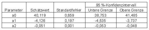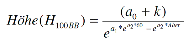 Die Modellierung des Höhenwachstums erfolgt auf der Basis der sogenannten GOMPERTZ-Funktion; die Parameter dieser Wachstumsfunktion wurden dabei mittels einer nichtlinearen Regressionsanalyse berechnet. Die verwendete Regressionsgleichung lautet (k=7,88):