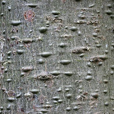 Abbildung 3: In der Jugend ist die Rinde der Großen Küstentanne glatt, grau und mit vielen Harzblasen bedeckt