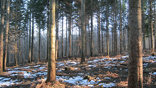 In der frühen Stangenholzphase werden vor allem grobastige, stark vorwüchsige und schlecht geformte Exemplare entnommen. Bei einer Bestandeshöhe von 12 – 15m werden ca. 200 Z-Bäume ausgewählt und mäßig stark freigestellt. Astung (grün, trocken) kann die Werterwartung des Bestandes steigern. Zielstärke: In 40 – 60 Jahren mindestens 45 cm starkes Holz.
