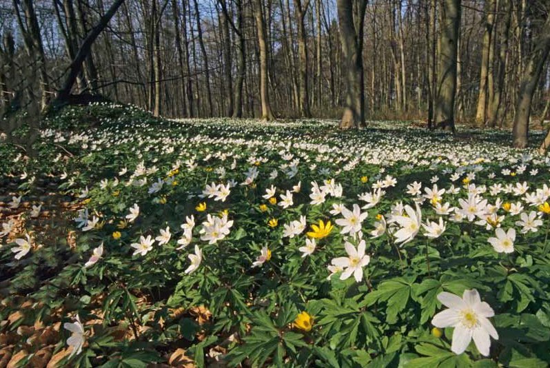 a) Männliche und weibliche Blühorgane (gesondert) am selben Baum, die meisten mitteleuropäischen Baumarten wie: Fichte, Kiefer, Lärche, Tanne, Birke, Erle, Buche, Eiche, Hainbuche und Ahorn (im Übergang zu Zwitterblüten)