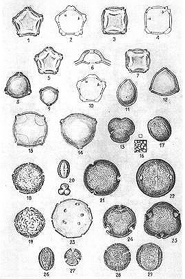 Die von den meisten anemogamen Baumarten erzeugten Pollenmengen sind enorm. Wenn man jedoch bedenkt, dass ein großer Teil der freigesetzten Pollen (beim Windtransport mehr als bei der Insektenbestäubung) verloren geht, so erscheint diese Massenproduktion notwendig: Der Pollen ist ein mehrzelliges, von vielschichtiger Wand umgebenes, in den Pollensäcken entstehendes Gebilde und stellt den männlichen Gametophyten dar. Fichte hat rund 200.000 Pollen je Blüte, Kiefer 160.000, Eiche 40.000 und Buche 12.000.