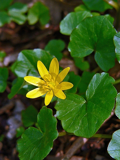 Abb. 7: Mit glänzenden Blättern und dottergelben Blüten bildet das Scharbockskraut dichte Rasen in feuchten Laubwäldern. Foto: J. Preller