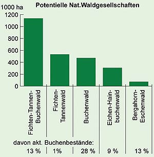 Abbildung 1: Flächen der potenziell natürlichen Waldgesellschaften und der Anteil der Buchenwälder