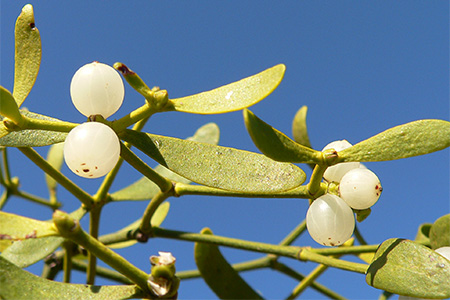 Die Gemeine Mistel (Viscum album L.) zählt zu den wenigen parasitischen Pflanzen in unseren Breiten. Doch wenn man ihre Biologie einmal genauer betrachtet, ist sie gar kein Parasit im engeren Sinne. Einen erheblichen Beitrag ihrer Nährstoffversorgung leistet sie selbst mit Hilfe der Photosynthese. In Bayern ist die Mistel nach den Ergebnissen der jährlichen Waldzustandserhebung vor allem in den Kiefernwäldern verbreitet.