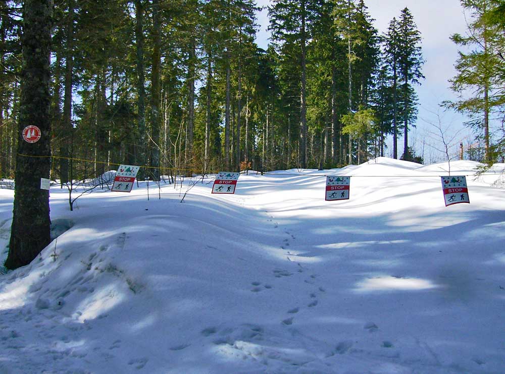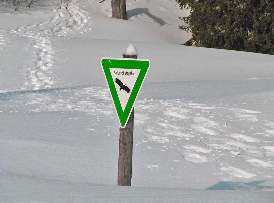 Während infrastrukturgebundene Aktivitäten wie Wandern oder Langlaufen für Wildtiere berechenbar sind, da sie auf konstanten Störlinien stattfinden, haben Aktivitäten abseits von Wegen ein großes Störpotential für Wildtiere. Eine Lenkung dieser Aktivitäten ist besonders schwierig, da der Aufenthaltsort der Personen nicht an die Infrastruktur gebunden und eine Lenkung über Beschilderungen daher nicht möglich ist. Aber auch wenn Schilder zu Lenkungszwecken im Gebiet aufgestellt werden, ist dies keine Garantie, dass Wildtiere nicht beunruhigt werden. So werden immer wieder Übertretungen von Wildruhegebieten oder Nichteinhaltung von Wegegeboten registriert (Abb. 1). Viele Personen sind sich nicht bewusst, dass ihr Verhalten für Wildtiere problematisch sein kann.