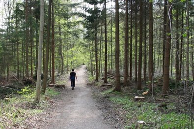 - 50 gingen auf einer festgelegten Route durch einen gepflegten Wald