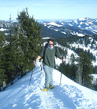 In der Testregion Ibergeregg fanden wir alles, was auch viele andere Forstleute im subalpinen Bereich beschäftigt: Sensible Naturräume mit bedrohten Tieren (hier das Auerhuhn) und Schneeschuhläufer, die kreuz und quer durchs Schutzgebiet laufen, dazu Tourismusanbieter, Naturschützer und Politiker mit den unterschiedlichsten Interessen.