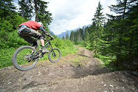 All Mountain beinhaltet Routen, die ohne künstliche Elemente auskommen. Sie gleichen oft Wanderwegen – auch im Wald. Der Eingriff in Natur und Landschaft ist hierbei eher gering.
