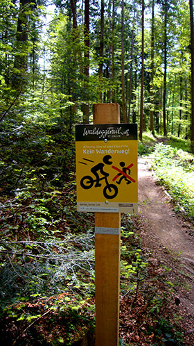 Wenn Wanderer und Biker dieselben Weg nutzen, kann es Probleme (Erschrecken, Kreuzungsprobleme, Verschleiss von Treppen und Wegen) geben. Daher empfiehlt es sich, bei problematischen Streckenabschnitten die Bike- und Wanderwege zu entflechten oder die Bike-Nutzung auf bestimmten Wanderwegen zu verbieten. Grundsätzlich ist eine gegenseitige Rücksichtnahme wichtig.