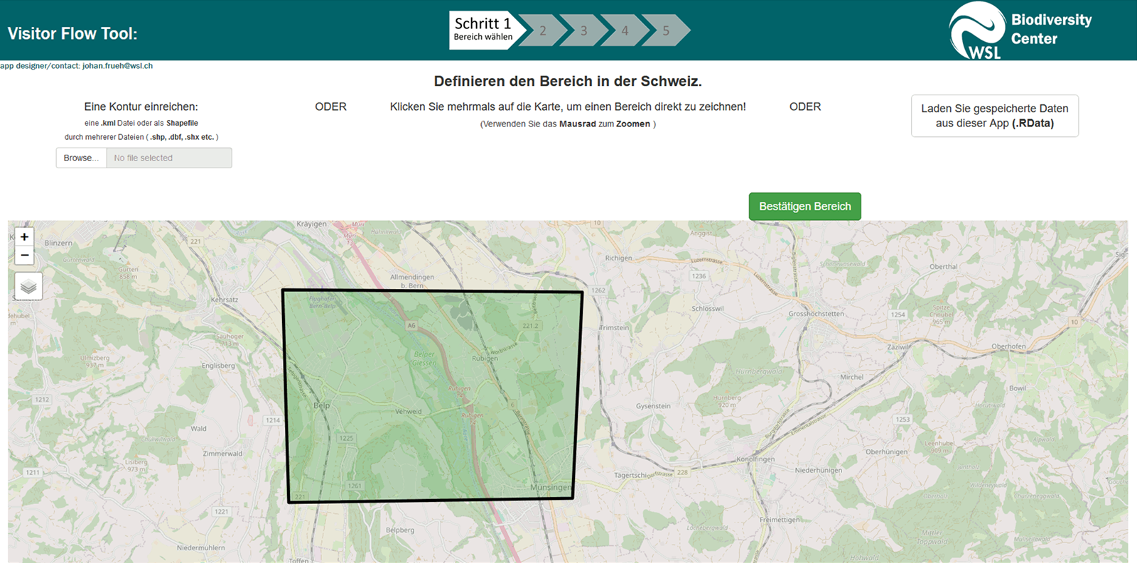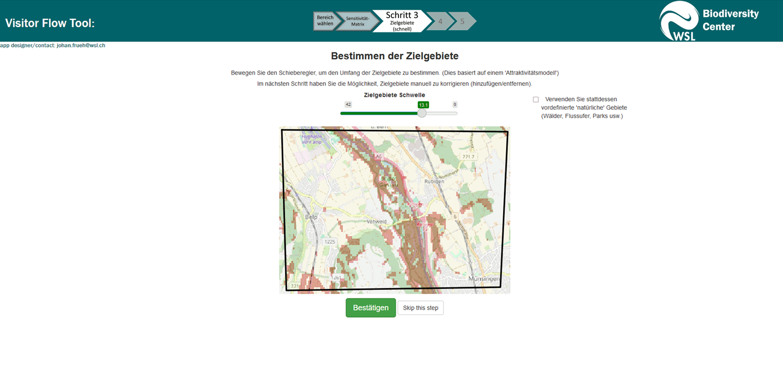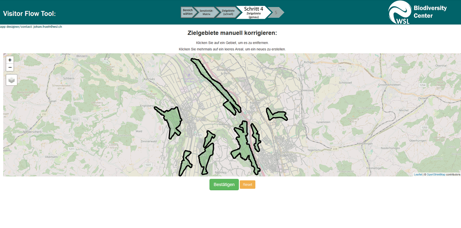 Das Besucherlenkungstool der WSL steht kostenlos zur Verfügung und kann über die Webseite webapps.wsl.ch/visitorFlowTool aufgerufen werden.