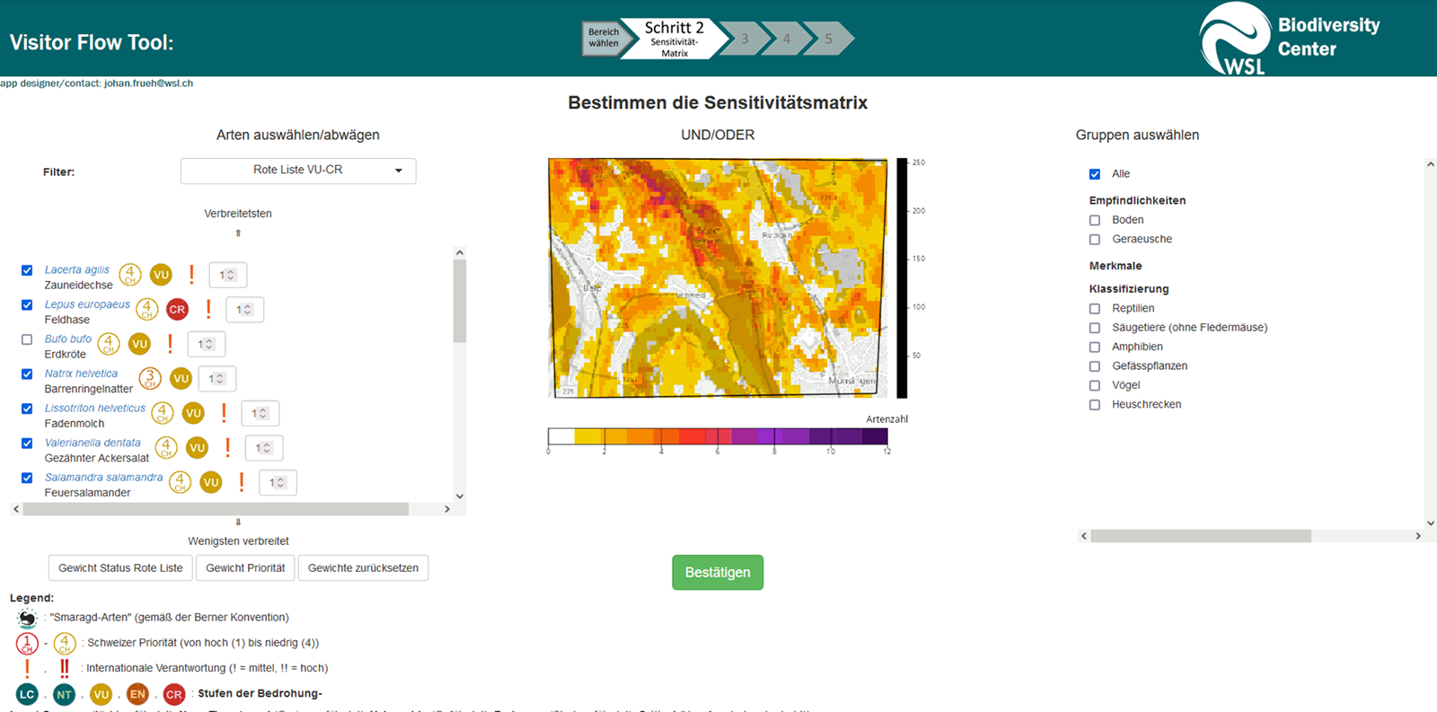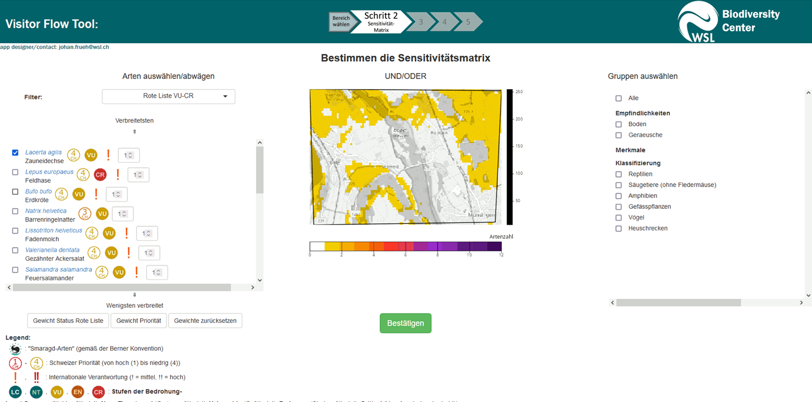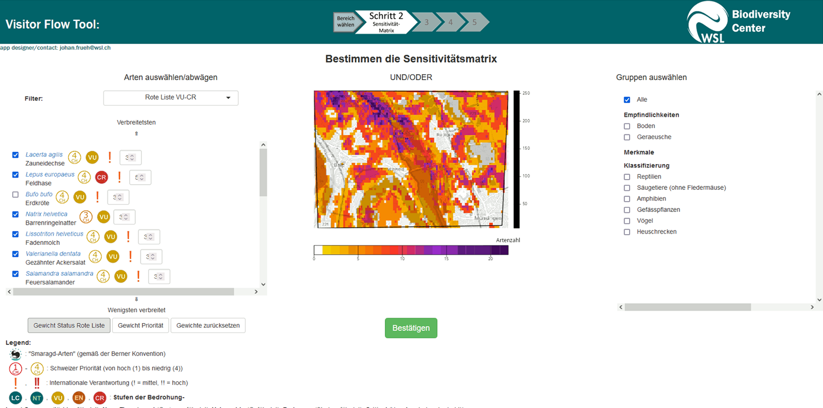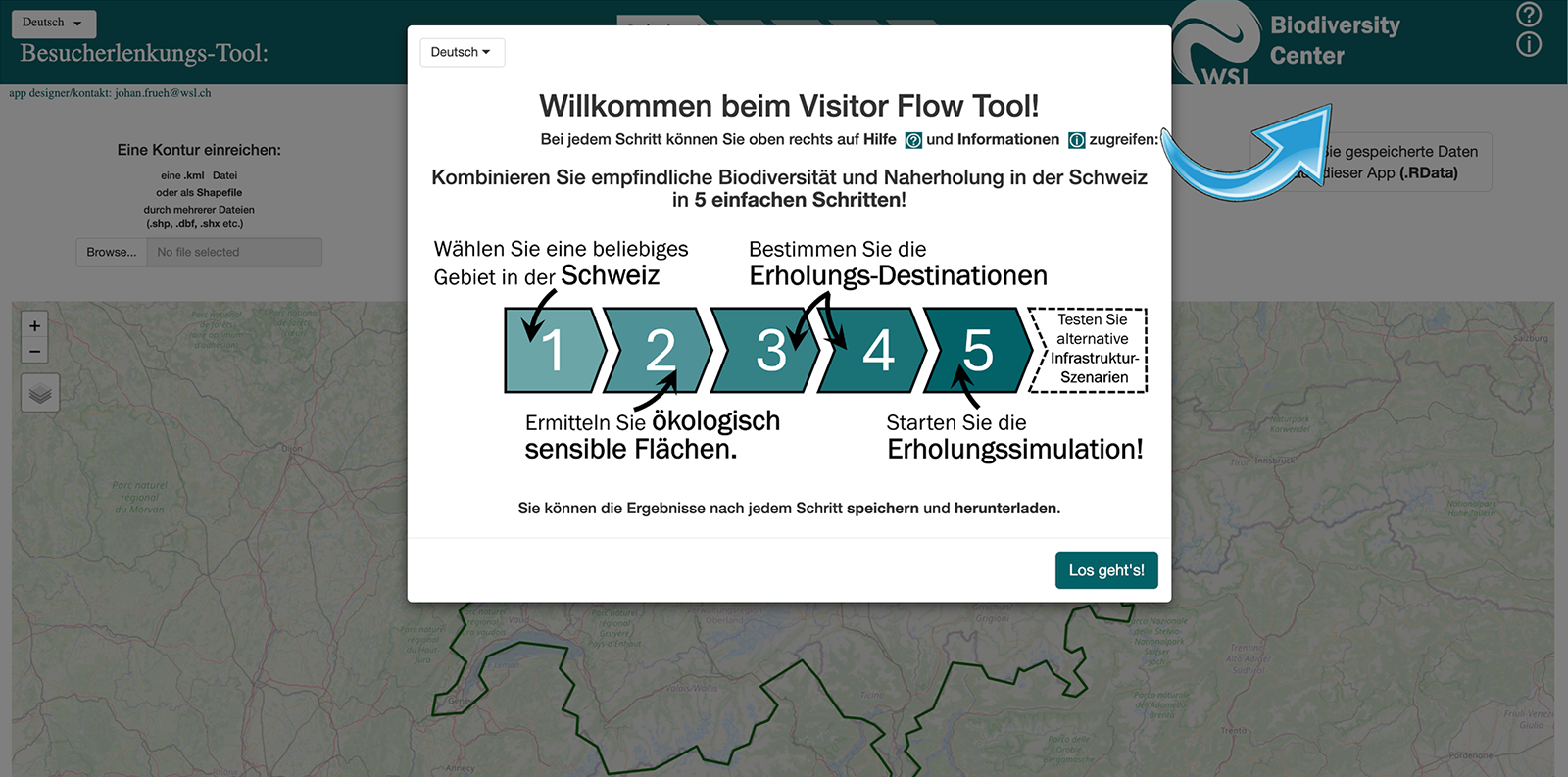 Das Besucherlenkungstool der WSL steht kostenlos zur Verfügung und kann über die Webseite webapps.wsl.ch/visitorFlowTool aufgerufen werden.
