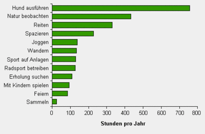 Die meisten Freizeit- und Erholungsaktivitäten im Wald spielen sich auf oder in der unmittelbaren Umgebung von Waldwegen und Waldstrassen ab. In den letzten Jahren haben aber auch die spezifischen Freizeitangebote in Wäldern zugenommen. So stieg beispielsweise die Anzahl der Seilparks innerhalb von fünf Jahren auf fünfzehn Anlagen an. - Belastung des Lebensraumes Wald