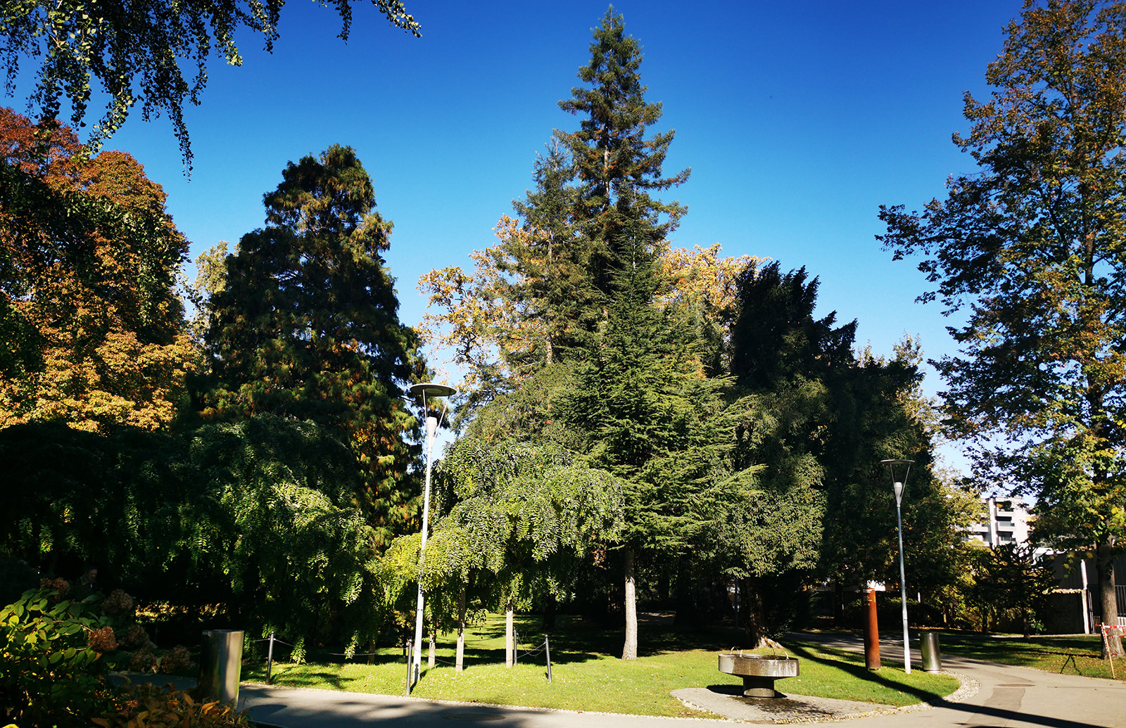 Abb. 8. Bäume mildern die unerwünschten Folgen der Klimaerwärmung (lokaler Kühleffekt) und reduzieren den Klimawandel (Kohlenstoffbindung beim Wachstum). Dies sollte bei künftigen Stadtplanungen unbedingt berücksichtigt werden. Rasen auf einerm Tiefgaragendach oder Bäume in Blumenkübeln sind dafür kein Ersatz. Foto: Doris Hölling