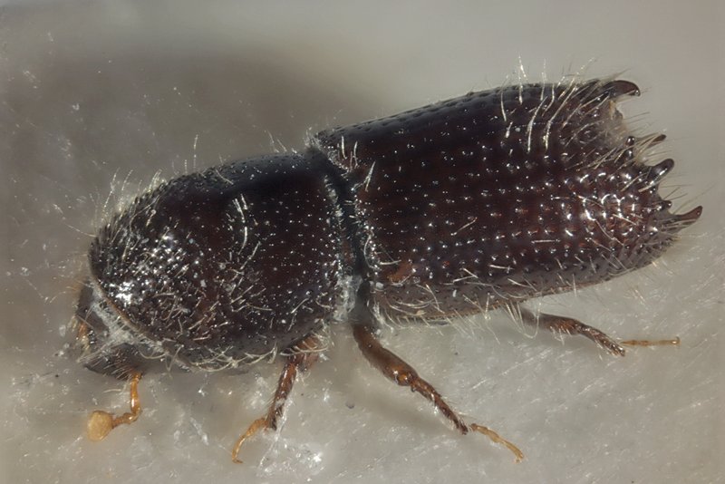 Im Herbst, wenn sich die Käfer zur Überwinterung in die Rinde von vitalen Bäumen einbohren, sind diese durch farblosen, perlschnurförmigen Harzfluss deutlich erkennbar.