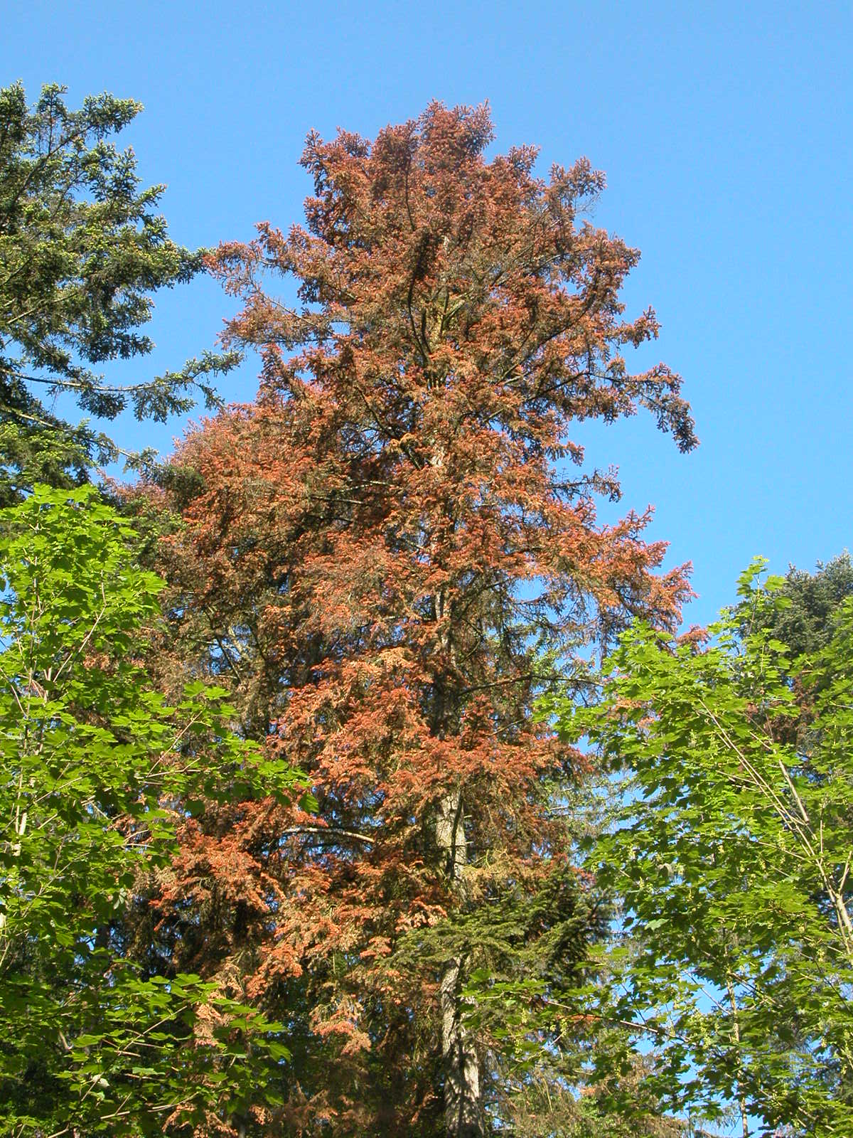 Es ist davon auszugehen, dass die Weisstanne zukünftig eine höhere Anfälligkeit gegenüber dem Krummzähnigen Weisstannenborkenkäfer aufweisen wird. An Standorten ausserhalb des natürlichen Verbreitungsgebietes der Weisstanne ist die Ausbreitung des Käfers bereits heute stressbedingt begünstigt.
