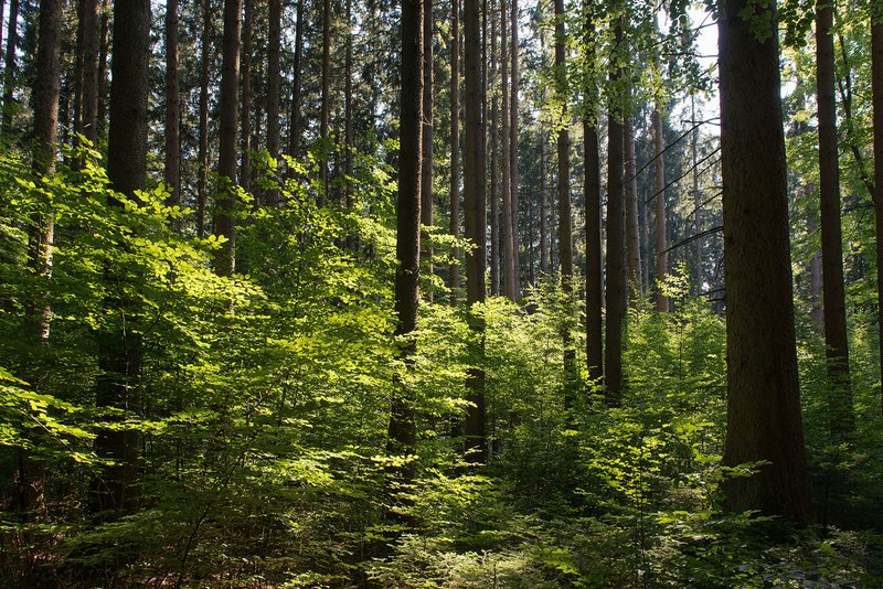 Abb. 1:Im Zuge des Waldumbaus sollen instabile Fichten-Reinbestände zu klimatoleranteren Mischbeständen umgewandelt werden (Foto: Gero Brehm, AELF FFB).