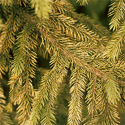 Abb. 2: Vergilbte Nadeln wie bei dieser Fichte waren Anfang der 80er Anzeichen für das Waldsterben (Foto: Archiv LWF).
